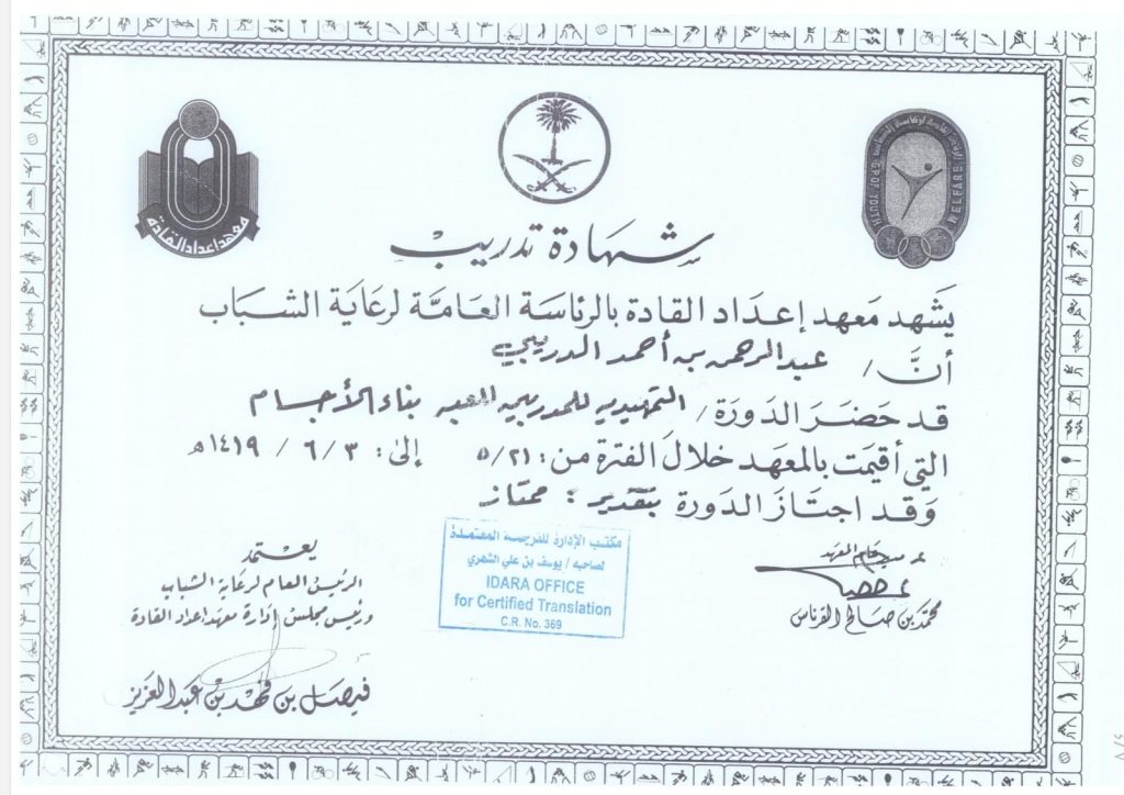 - شهادات تدريب محلية ودولية معتمدة